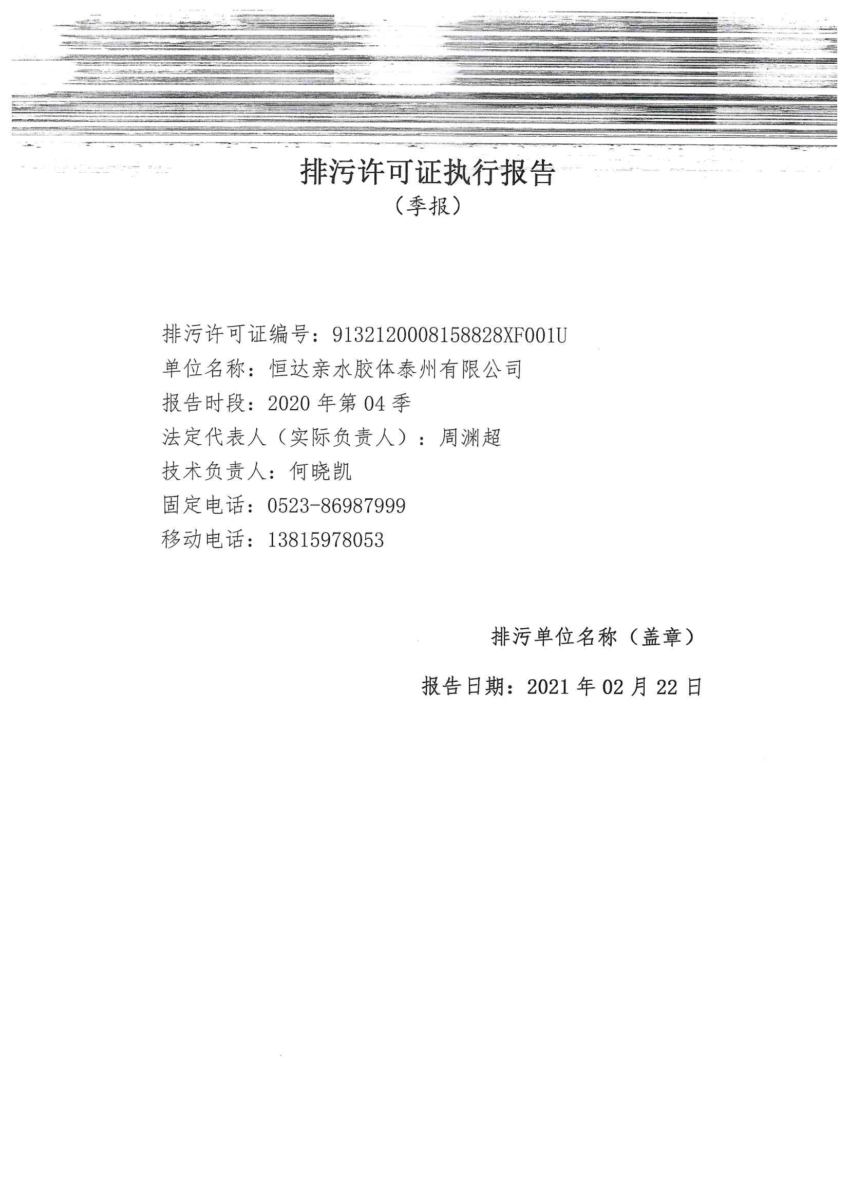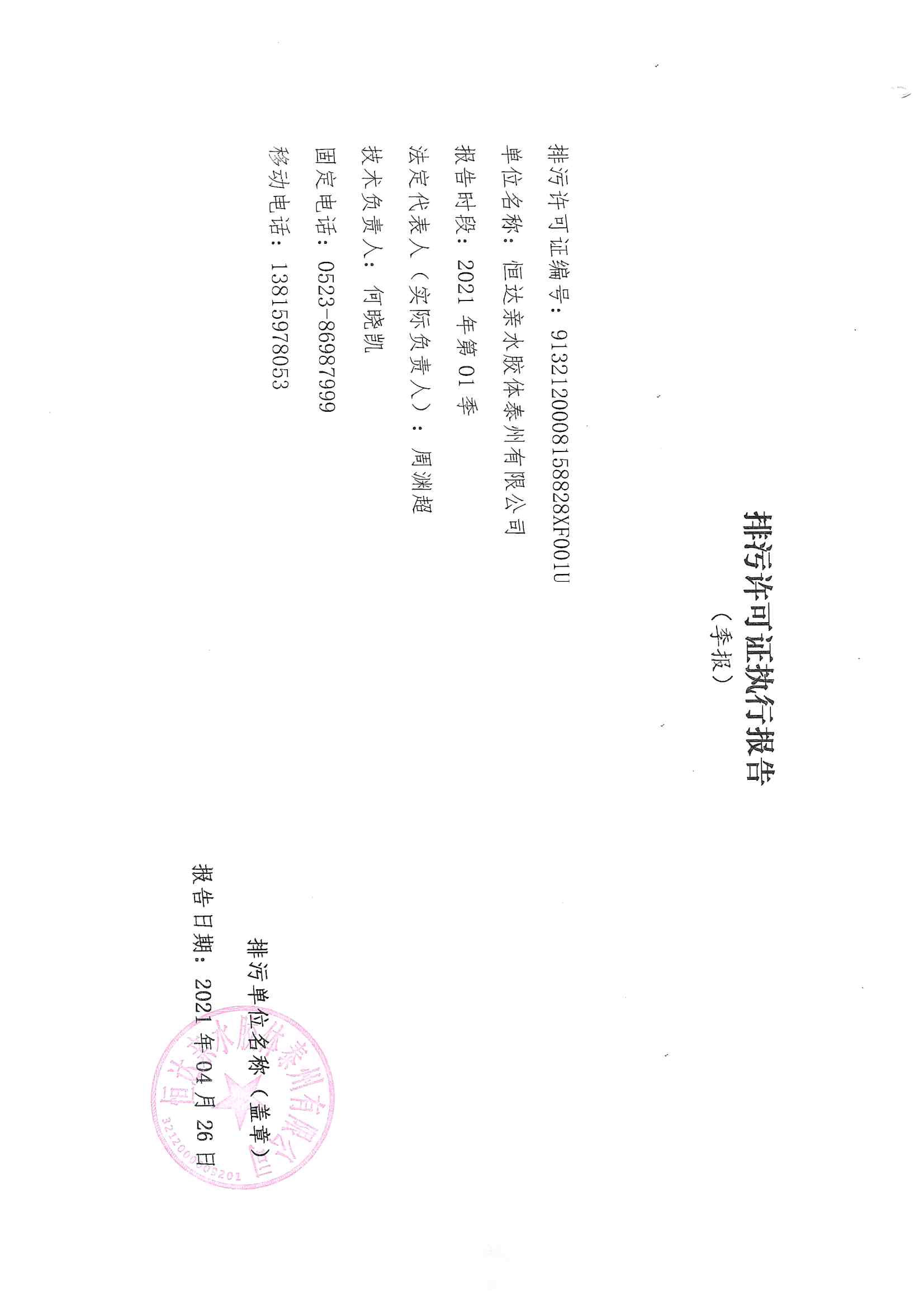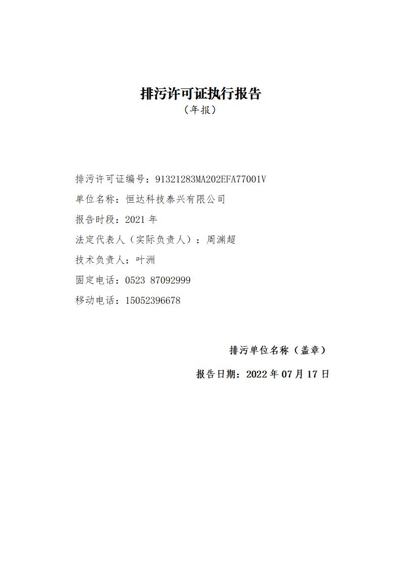 恒達(dá)科技泰興有限公司-2021年排污許可證執(zhí)行報(bào)告